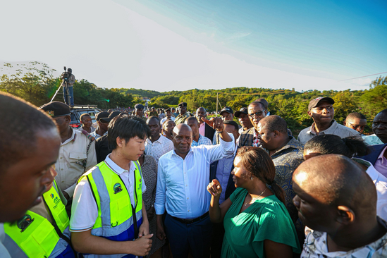 肯尼亞副總統(tǒng)基蘇爾·金迪基(中)考察鄉(xiāng)村公路642標(biāo)段項(xiàng)目 |