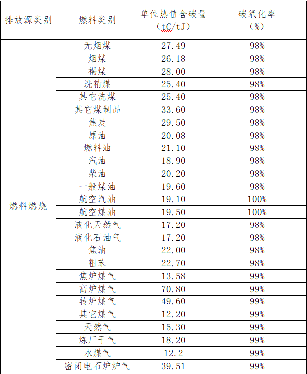 附表2報告主體排放因子和計算系數(shù)