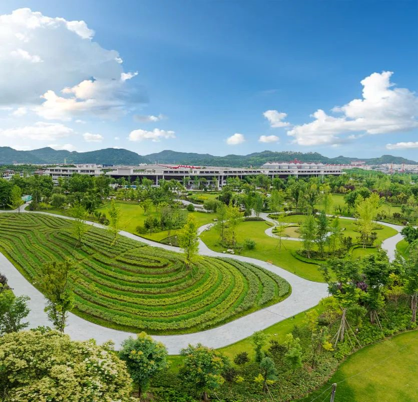 園區保存了較為完整的原生態自然環境,綠化率達98.5%,常年平均氣溫17.3℃,相對濕度78.5%,四季鳥語花香,氣候溫和濕潤,風光旖旎。