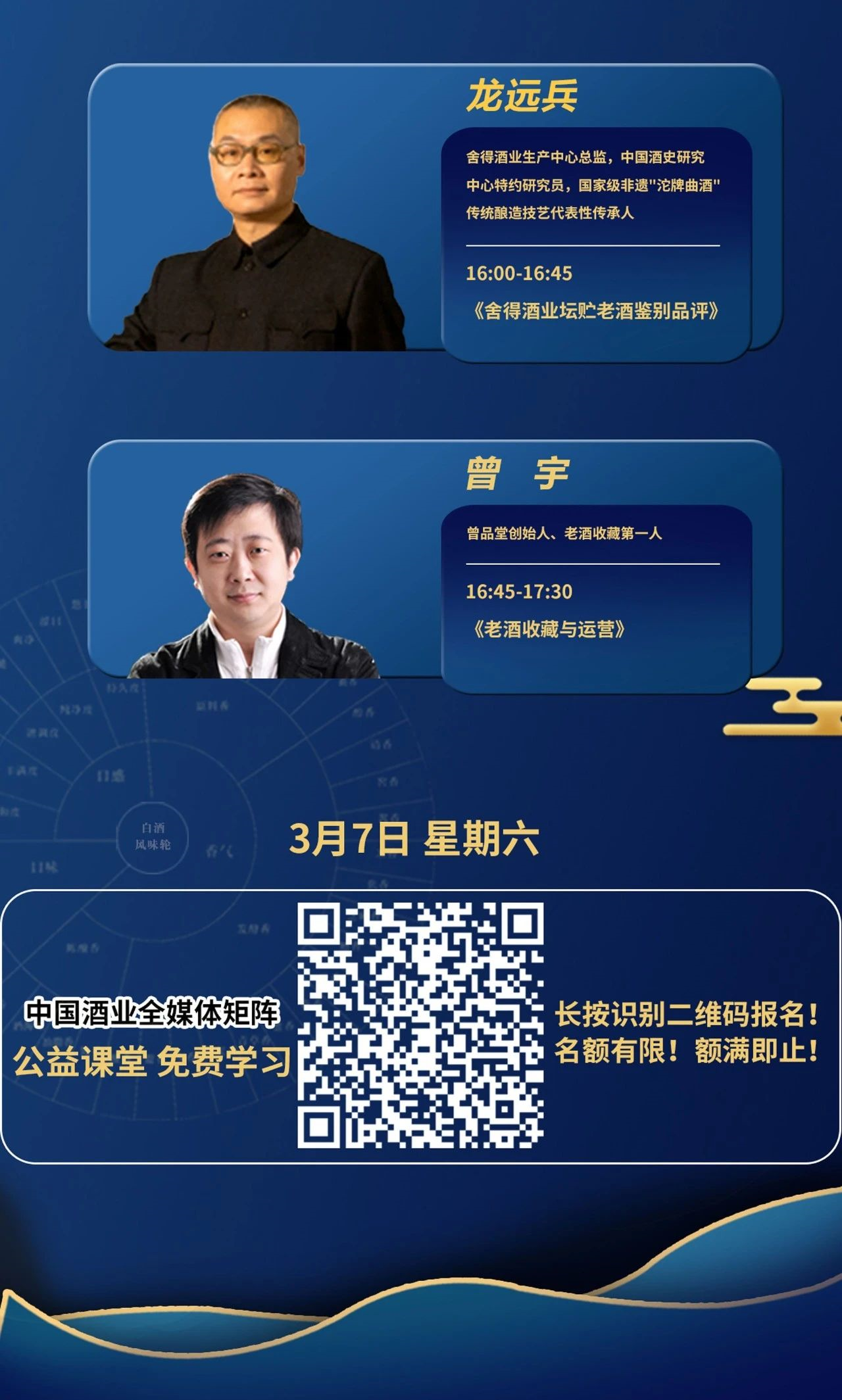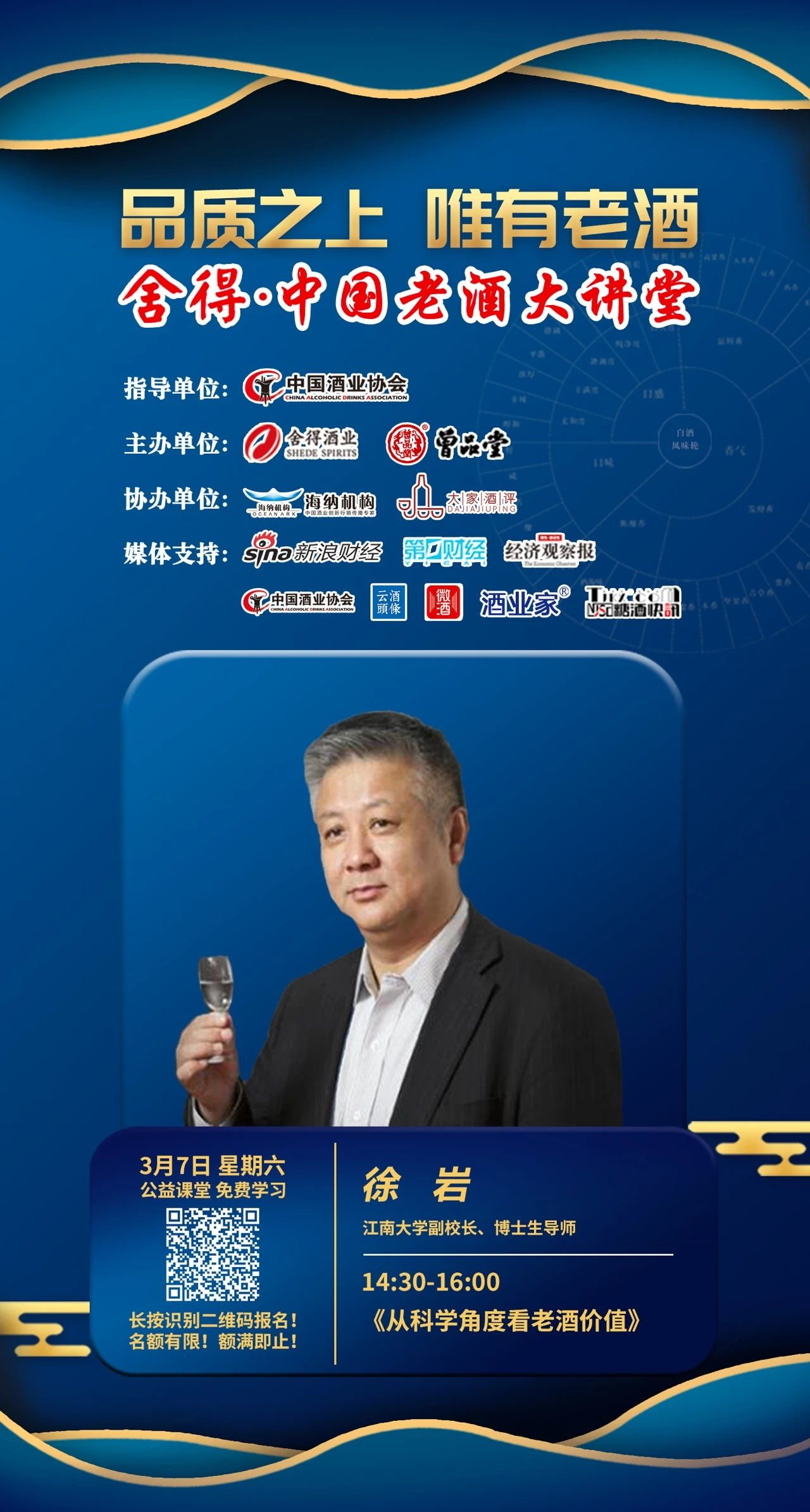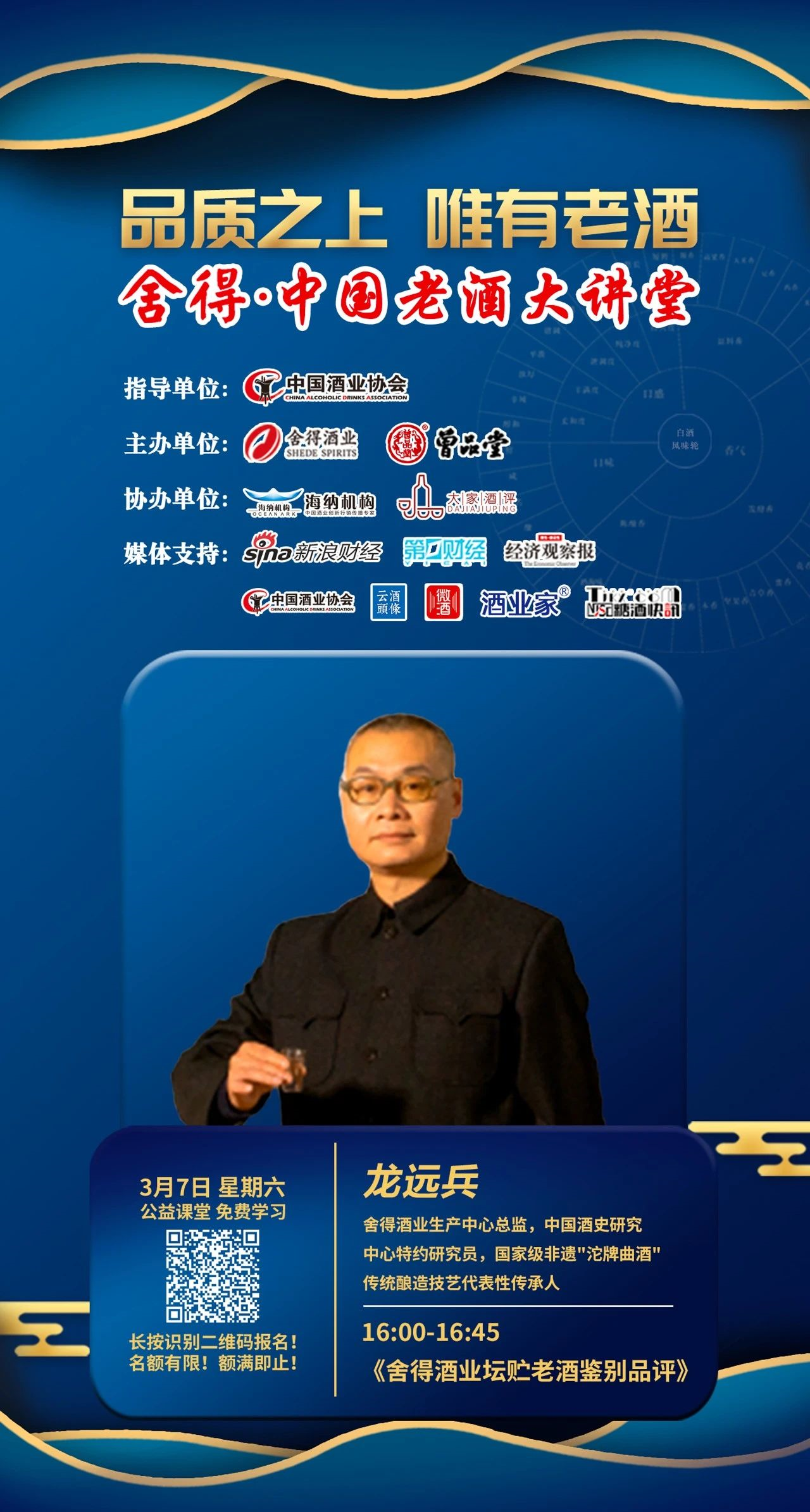最后,曾品堂創(chuàng)始人、老酒收藏愛(ài)好者、酒文化傳播者曾宇將為廣大愛(ài)好者講解《老酒收藏與運(yùn)營(yíng)》。