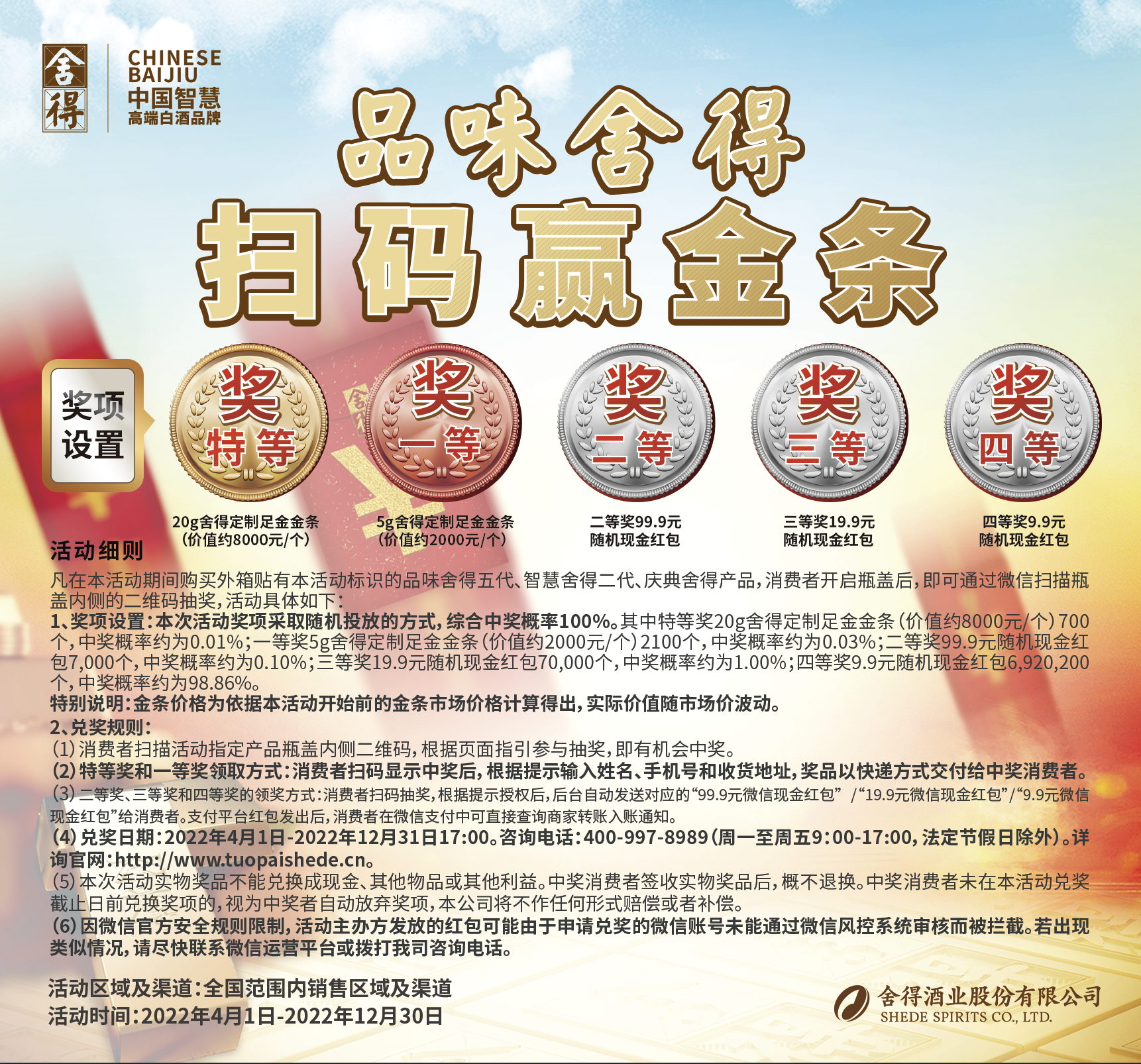 “品味舍得 掃碼贏金條”消費者促銷活動