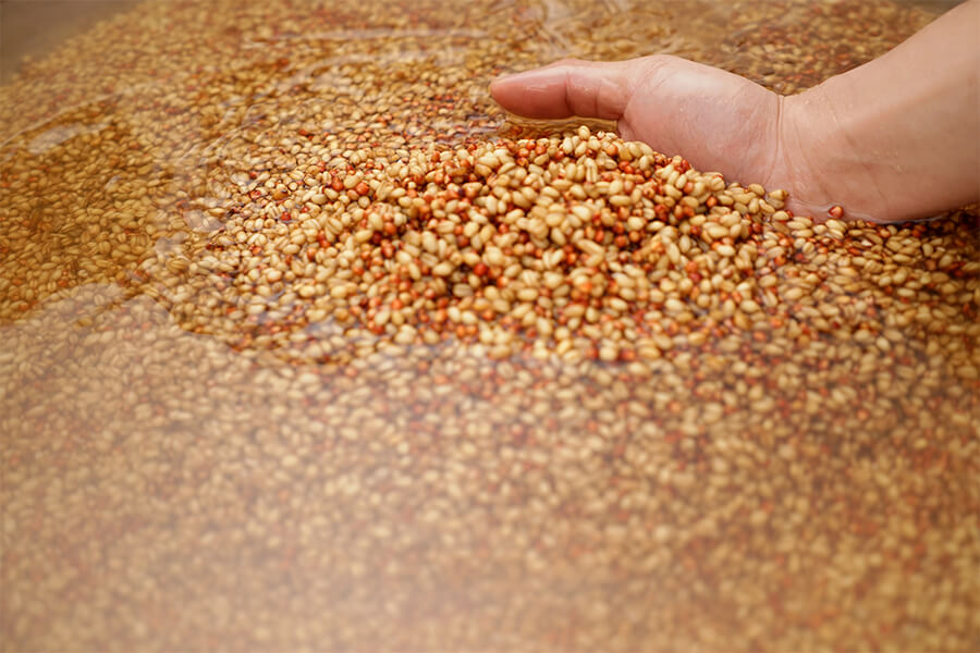 舍得酒業甄選優質原糧主產區的生態原糧,配合“六糧濃香工藝”,六糧配料,比傳統的五種糧食多一味,在濃香白酒釀造中具有特性:“高粱香、大米凈、糯米綿、玉米甜、小麥洌、大麥用于制曲”確保舍得酒香味成分的協調,其六糧配料的奧秘是大米和糯米的含量高,形成了舍得基酒的“醇、甜、凈、爽”風格特征。