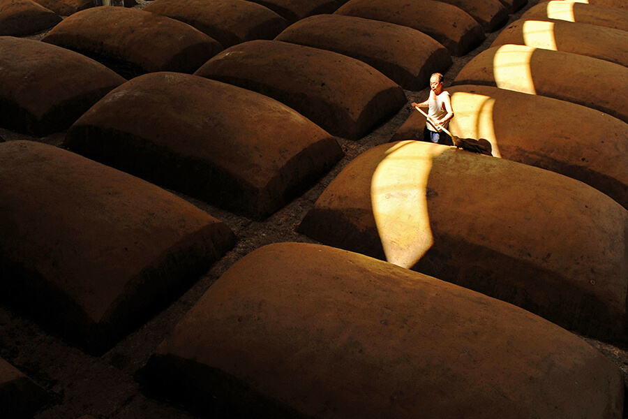 2、所有窖池均甄選當地特有的、未耕種的、無污染的坡地黃泥夯筑而成。